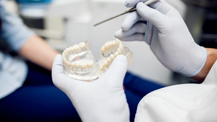 ابزاری پروتز دندانی قابل جابجایی یا ثابت برای جایگزینی دندانهای از دست رفته و بافتهای لثه مرتبط است.